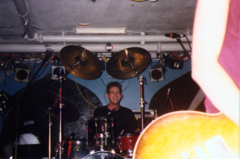 Todd peeks out from behind the drum kit!