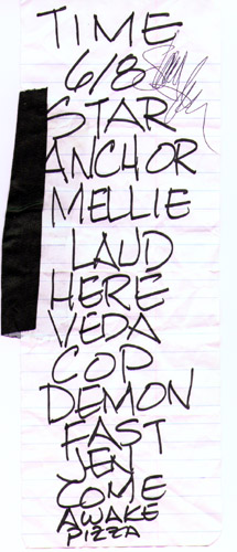Letters to Cleo setlist signed by Stacy Jones! I also got a really beat up drumstick - He must've gone through at least a half dozen during the show!