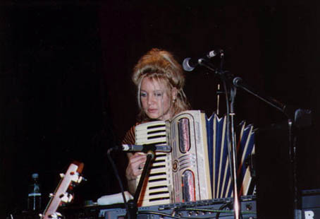 Elizabeth plays an accordion on
